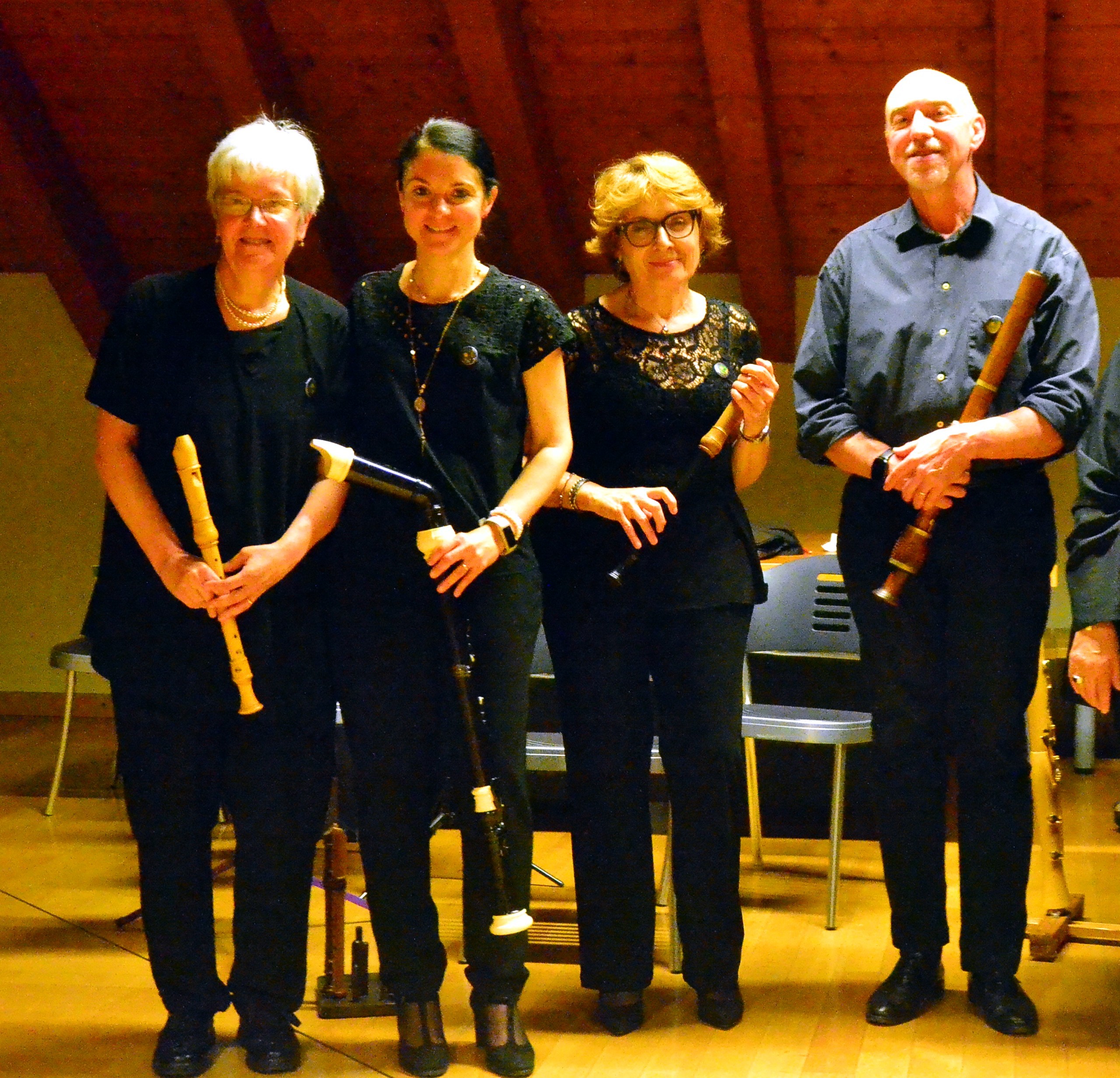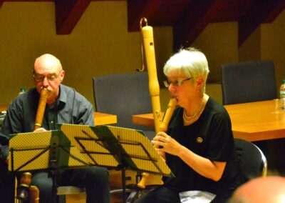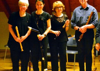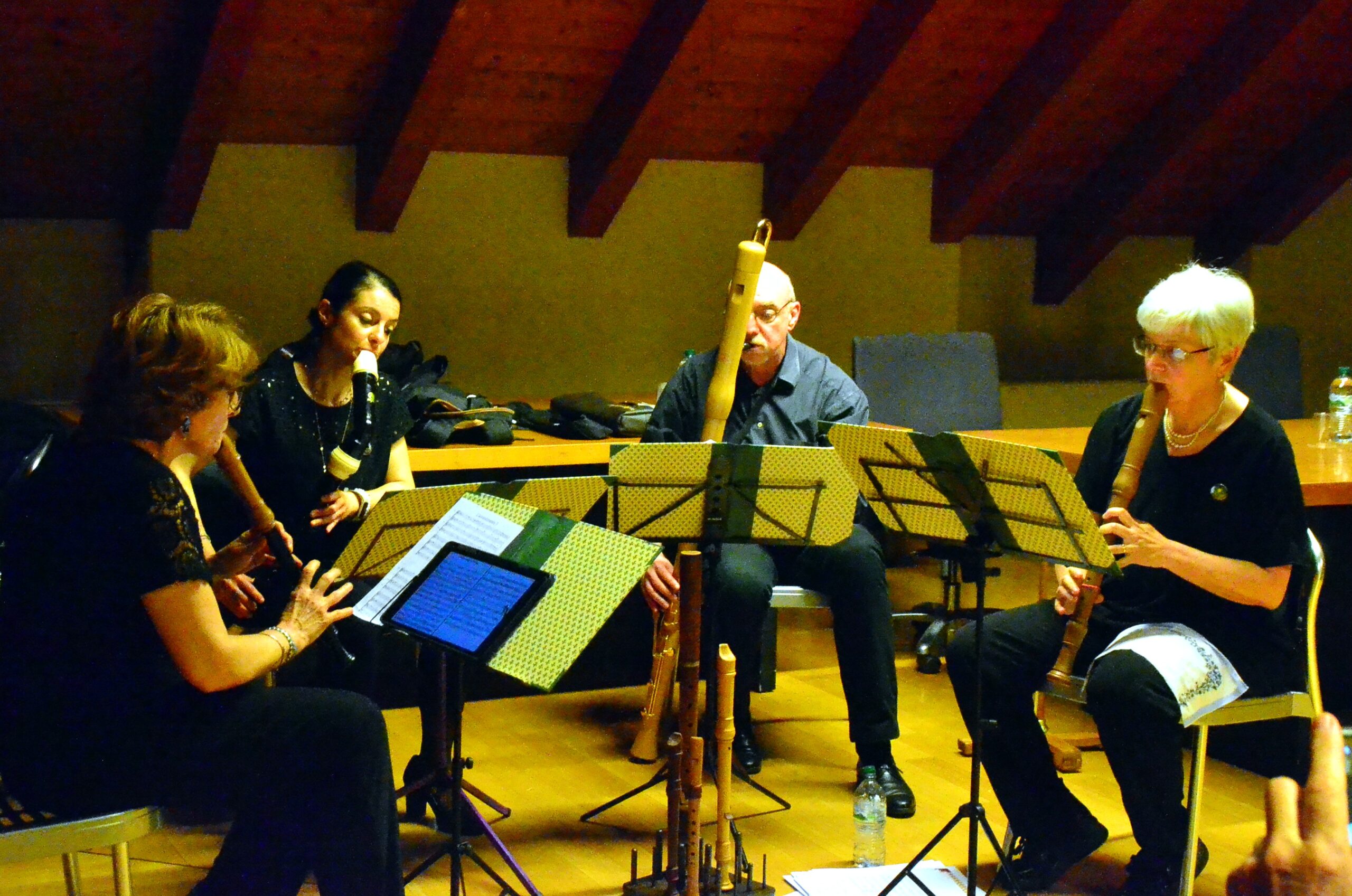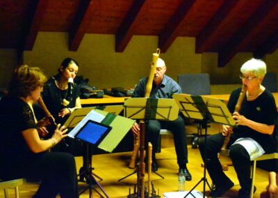 Gli interventi delle poetesse sono stati intervallati da intermezzi musicali: l’Astrolabium Recoder Quartet, quartetto di flauti diritti, ha allietato la serata eseguendo danze rinascimentali composte da M. Pretorius. Il quartetto ha poi concluso la serata eseguendo la “Passacaglia” di Haendel.